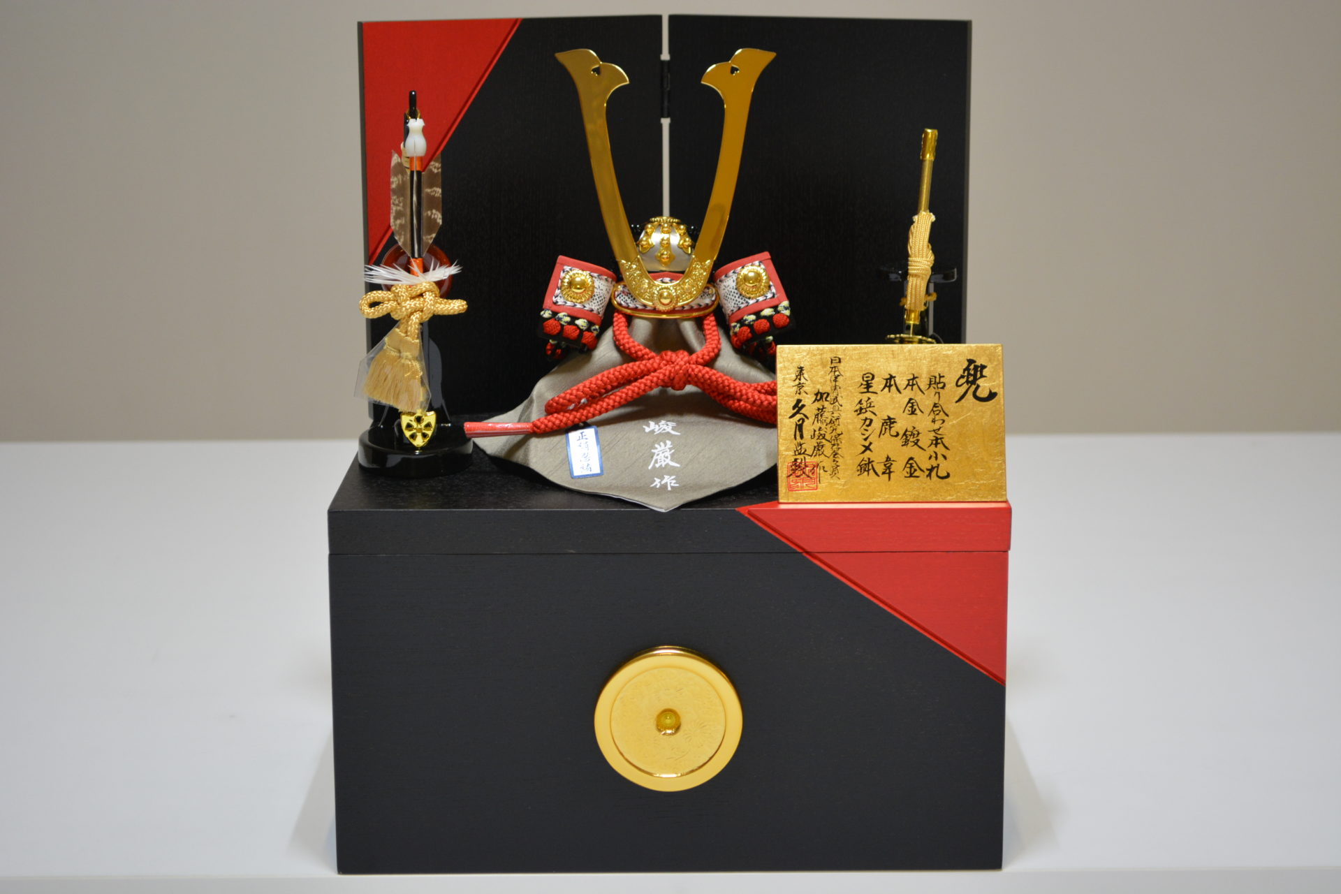 加藤俊厳作 黒小札赤糸縅兜飾り(収納タイプ)
