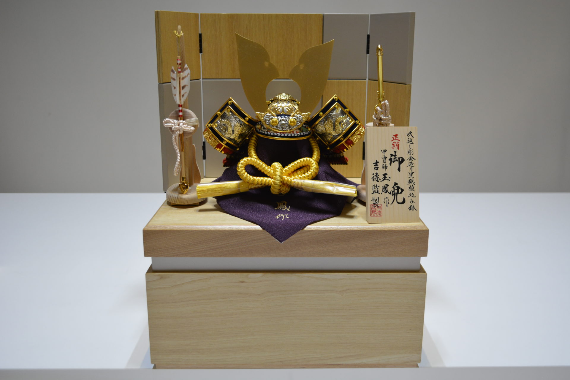 上原玉鳳作 金小札色々縅兜飾り(収納タイプ)