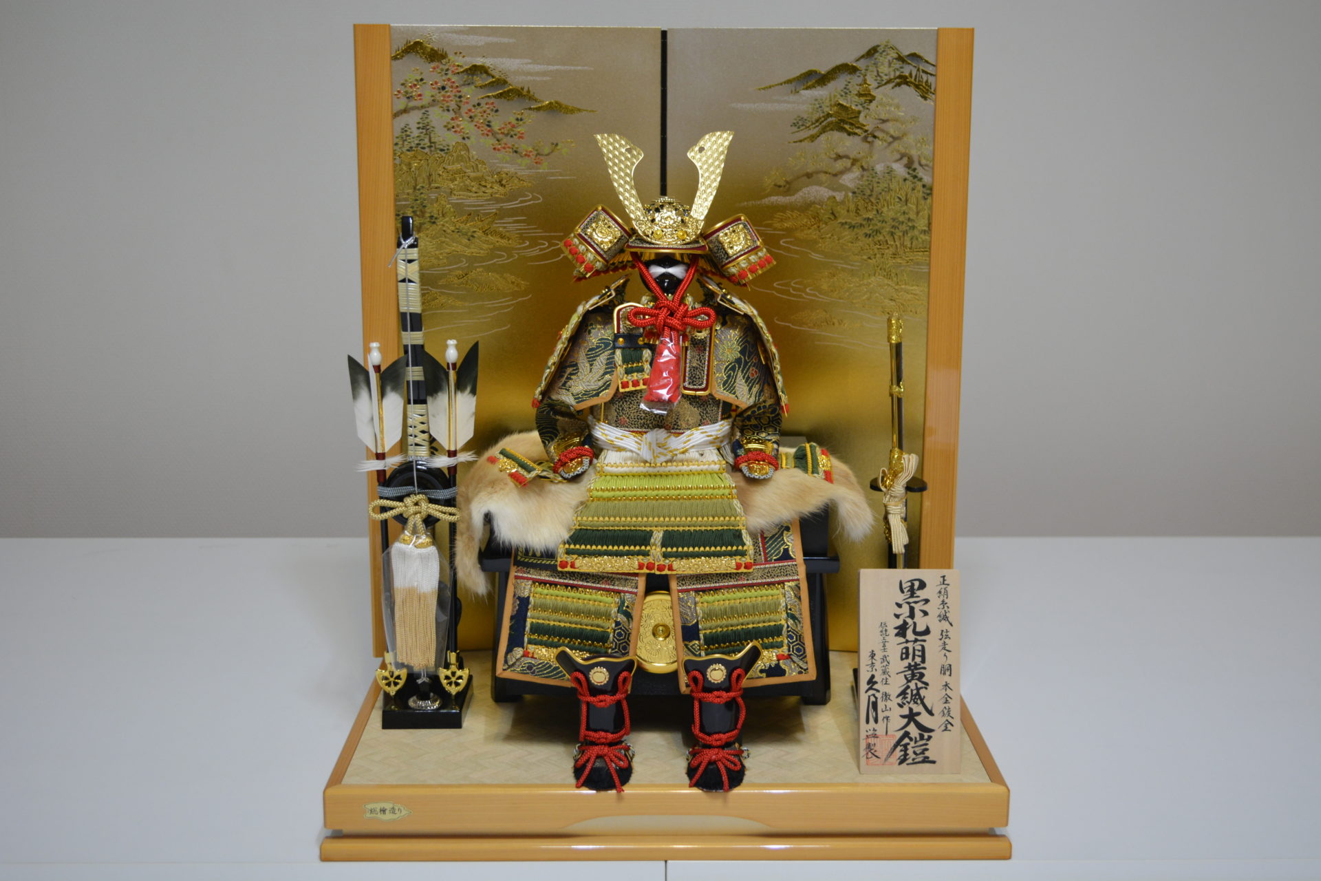 鈴木利光作 金小札白糸縅大鎧平飾り