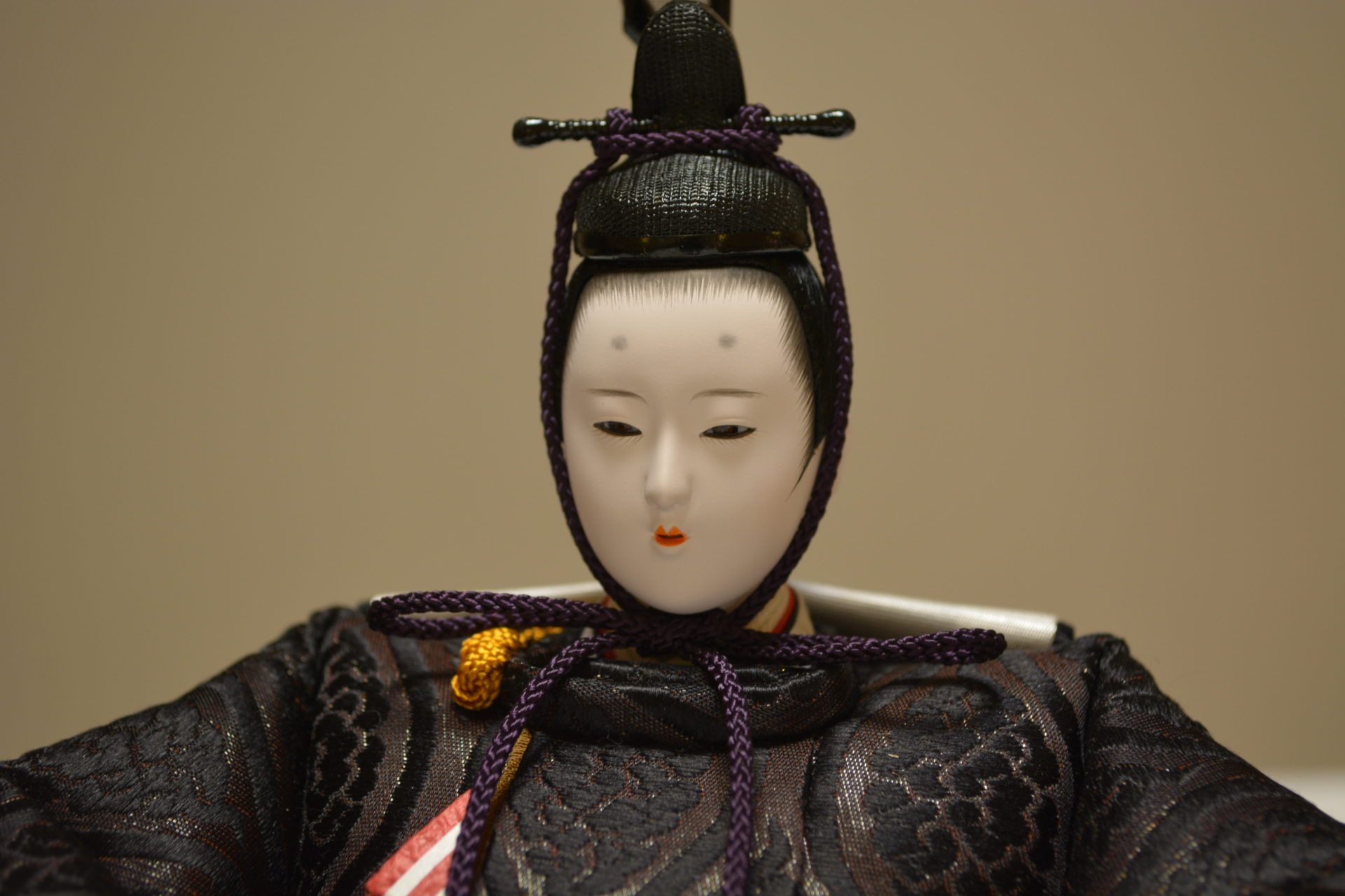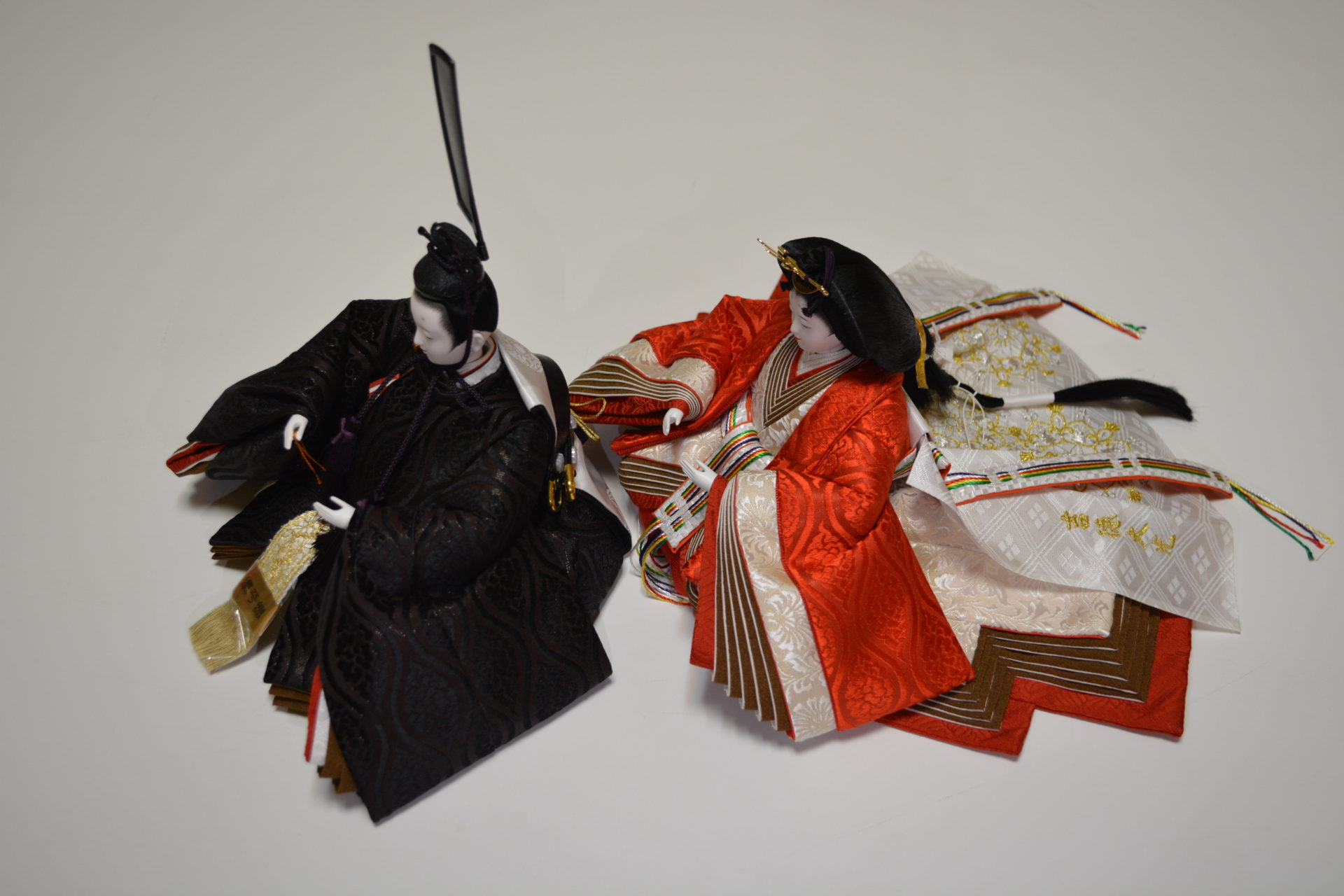 雲立湧地黒の御砲の殿と鮮やかな赤の色彩の姫、厳選した高級漆箔裂地を丁寧に仕立て着せ付けました。赴きある桜の屏風・吉徳大光オリジナルの端正なお顔が美しく融合した豪華な雛飾りです。
